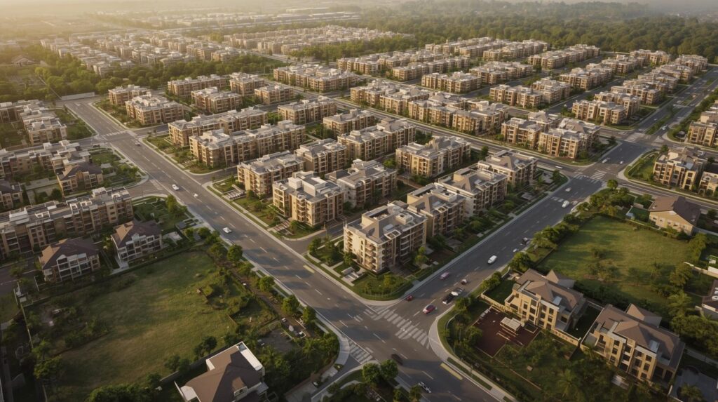 The 6% belt is where Noida Authority planning merges with Greater Noida urban expansion, creating: